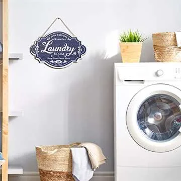 Show moreTransform your laundry space with the Jetec Vintage Wood Laundry Room Decor, artfully designed to bring a stylish and rustic charm to your home. Measuring 12 x 8 inches, this sturdy yet lightweight sign is made from high-quality wood that is both safe and non-toxic, making it an ideal addition to any household. The sign features classic dark blue tones paired with vintage lines, effortlessly adding an uplifting and inviting touch to your laundry room decor. With serrated hooks included for easy hanging, it’s designed to meet various decorative needs, ensuring your laundry space feels like home.