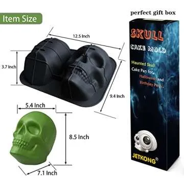 JETKONG Extra Large Silicone Skull Cake Mold Haunted Skull Baking Cake Pan for Halloween and Birthday Party