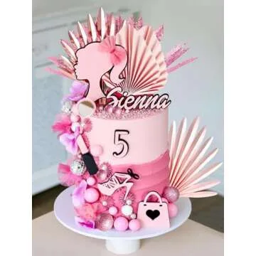 JeVenis Luxury Hot Pink Girl Cake Decoration Pink Girls Birthday Decoration Pink Balls Palm Leaves Heels Lipstick Bags Cake Topper for Birthday Bridal Shower Baby Shower