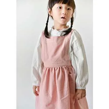 Jevopan Children Bib Apron Kids Apron with Extra Waist Frilly Design for Child with 2 Pockets, for Craft Kitchen Housework Gardening Cooking Baking Arts and Crafs Painting, Age 4-10 (Pink, Kids M)