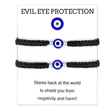 Jewanfix Evil Eye String Bracelets Handmade Black String Evil Eye Bracelet for Women Men Teen Girls Boys 2pcs