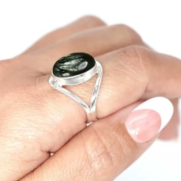 Show more Introducing the JEWELOPORIUM Green Russian Seraphinite Silver Ring - a stunning piece of jewelry crafted for elegance and comfort. Made from genuine 925 sterling silver, this ring showcases a captivating genuine Green Russian Seraphinite gemstone in a perfect oval cut measuring 10x14 MM. The ring, designed with meticulous attention to detail, is both anti-tarnish and lead/nickel-free, ensuring it's safe for all skin types. Ideal for women seeking stylish, bohemian-inspired jewelry, this piece has a comfortable fit designed with smooth edges making it perfect for daily wear or special occasions. With a size of 10.5, this exquisite ring combines beauty and quality that is sure to elevate any outfit.
