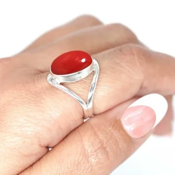JEWELOPORIUM Red Stone Silver Ring Size 7.5, 925 Sterling Silver Ring for Women, Oval Gemstone Boho Jewelry