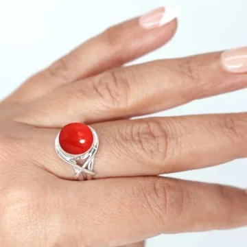 JEWELOPORIUM Red Stone Silver Ring Size 8, 925 Sterling Silver Ring for Women, Round Stone Boho Jewelry
