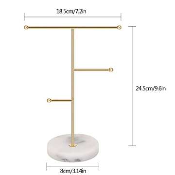 Introducing the Jewelry Organizer: Solid Marble Gold T-Bar Necklace Display Stand—a perfect blend of elegance and function that will transform your jewelry storage experience. Crafted from high-quality metal and natural marble, this stunning display stand is not only built to last but also features a timeless design that will seamlessly integrate into any decor. The luxurious gold finish adds a touch of sophistication, making it an exquisite centerpiece for your home or a chic addition...
