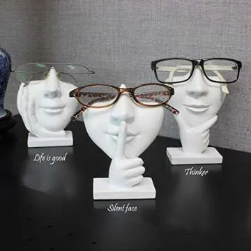 JewelryNanny Artsy Face Eyeglass Holder Stand - Sculpted Nose for Eyeglasses or Sunglasses, Life is Good, White