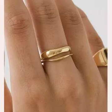 Show more Introducing our stunning gold-plated irregular ring set, a fashionable choice that adds a touch of elegance to any outfit. Crafted with care, this unique set includes two beautifully designed rings: a 2mm thin band and a 3mm chunky band, which can be worn separately or stacked for a more impactful look. Made from high-quality stainless steel and plated with 18K gold, these rings are not only stylish but also durable, ensuring a long-lasting shine.
