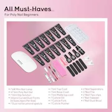 JEWHITENY Poly Extension Gel Nail Kit 14 PCS Poly Gel With Mini Nail Lamp Poly Nail Gel Kit with Slip Solution Basic Poly Gel Nail Art Tools Nail Art Design Beginner Kit