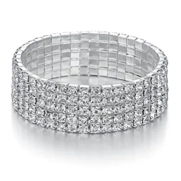 JEWMAY Yumei Jewelry 5 Strand Rhinestone Stretch Bracelet - Sparkling Bridal Tennis Bangle