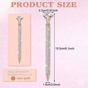 Jeyiour 6 Pcs Big Diamond Pens with Crystal Bling Rhinestone Metal Glitter Diamond Ballpoint Black Ink Pens Wedding Bridal Shower Favors for Birthday Gift Supplies(Rose Gold)