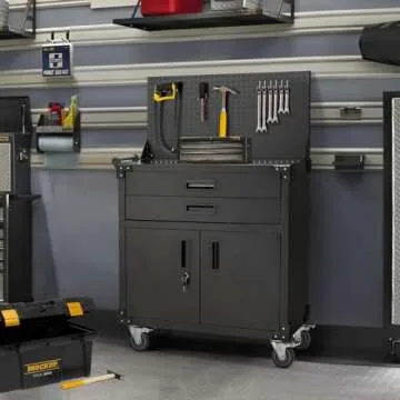Show moreIntroducing the JFHID Rolling Tool Chest – the ultimate solution for your organization and storage needs in any workspace! With a stunning 35.2-inch black finish that complements every decor style, this tool chest features a robust design made from heavy-duty powder-coated steel. Engineered to withstand up to 220 lbs, its tiered layout provides ample storage without compromising durability. The tool chest comes equipped with a convenient pegboard, an innovative locking cabinet, and two spacious drawers. Whether you're a DIY enthusiast, a contractor, or a household manager, this versatile tool cart is bound to enhance your productivity.