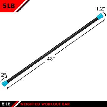 JFIT Weighted Workout Bar with Rubber Padding, 48”, 5 LB, Aqua/Black,20-7505