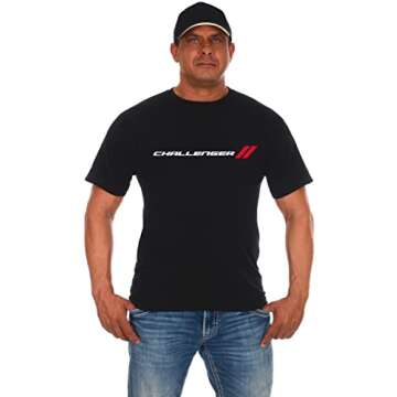 JH Design Men's Dodge Challenger T-Shirt Short Sleeve Crew Neck Shirt (X-Large, Black)