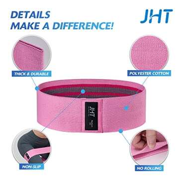 JHT Resistance Bands for Legs Butt, 3 Levels Booty Hip Bands for Squat Exercise Workout Fitness Yoga Gym Pilates Bar, Wide Fabric Thighs Loop Band, Non Slip Sweet Sweat, Gift for Women