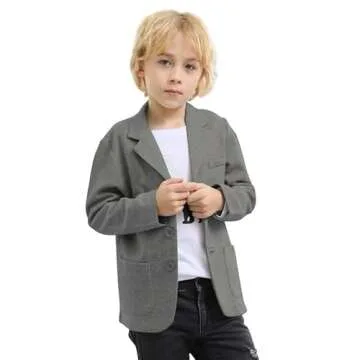 JIAHONG Kids Boys' Blazer Casual Buttoned Blazers Suit Jacket Two Pockets Suit Jacket for Girls or Toddler 3-12 Years(Dark Grey-s)