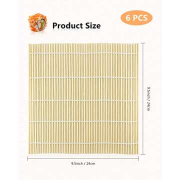 JIALEEY Bamboo Sushi Rolling Mat, 9.5x9.5 Inch, 6 PCS Set