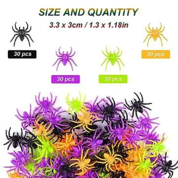 - Super Value Set: Includes 120 plastic spiders in four colors, ensuring you have enough for all your decorating needs.