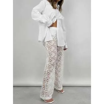 Experience the joy of expressing yourself through your wardrobe. These sheer lace pants empower you to showcase your unique style and personality. The intricate detailing and striking design make them more than just a clothing item; they are a statement piece that transitions effortlessly from day to night and casual to glamorous. Embrace the compliments and confidence that come with wearing something truly sensational.