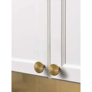 Show more Transform your home decor with the exquisite JIASENBAO 5 Pack Antique Brass Cabinet Knobs. These vintage flat drawer pulls are not just functional; they're a stylish statement piece that adds a touch of elegance to any kitchen cupboard, bathroom, dresser, or other cabinetry. Crafted from solid zinc alloy with an antique brass finish, these knobs are meticulously designed to enhance your home's interior while providing a timeless charm that complements both modern and traditional styles. Each knob has a classic design that seamlessly fits various drawer styles, ensuring your cabinets not only function smoothly but look stunning too!