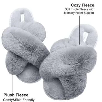 Show moreIntroducing our latest sensation in home footwear, the JIASUQI Cross Band Indoor House Slippers for women! Crafted from a sumptuous plush furry faux fur upper, these slippers feature an elegant cross-band, open-toe design that adds a touch of luxury to your everyday comfort. Whether you are relaxing at home, stepping out to grab the mail, or indulging in a day of self-care, these cozy warm slippers promise to keep your feet feeling pampered, calmed, and stylish. Designed with breathability in mind, the open-toe construction ensures your feet remain cool and refreshed all year long, making them ideal for spring, summer, and winter. You will truly feel as though you’re walking on clouds!