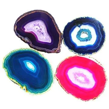 JIC Gem 4-5" Extra Mixed Dyed Color Agate Coasters Polished Natural Geode Coasters Sliced with Free Rubber Bumper Set of 4 Home Decoration