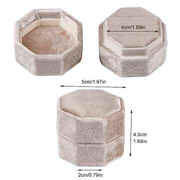 Show more Introducing the JIDUO Octagon Velvet Ring Box, a beautifully crafted storage solution that brings elegance and charm to your most cherished rings. Designed specifically for engagements and weddings, this box features a luxurious velvet texture that feels soft to the touch. Its unique octagon shape symbolizes good fortune, making it an ideal choice for such momentous occasions. With care put into every handmade detail, this ring box is not just a storage container, but a valuable keepsake for your special moments.