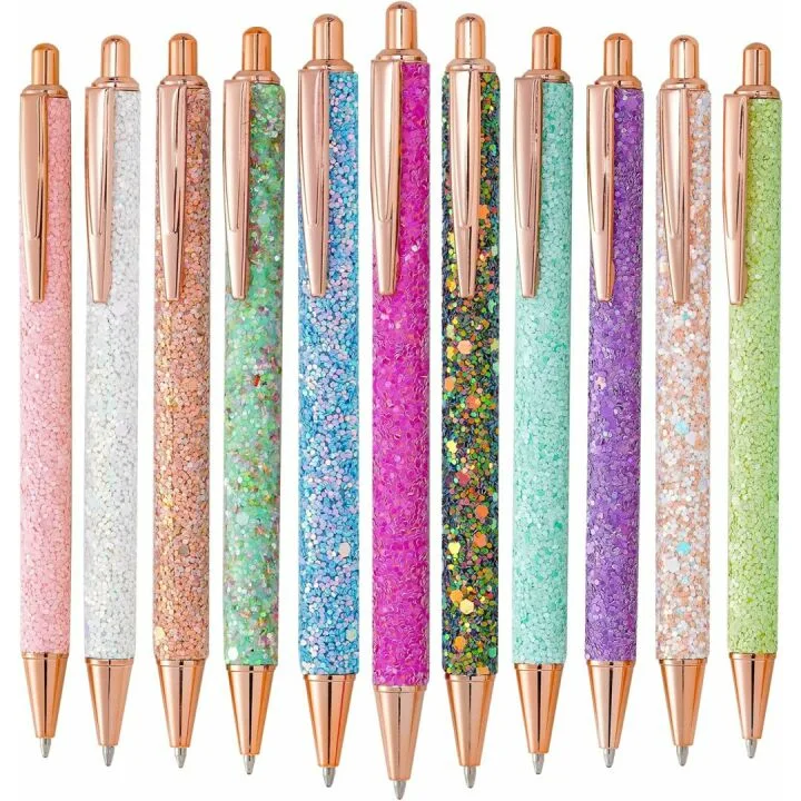 Jiebor 11-Piece Glitter Ballpoint Pen Set – Cute Metal Pens for Office & Gifts