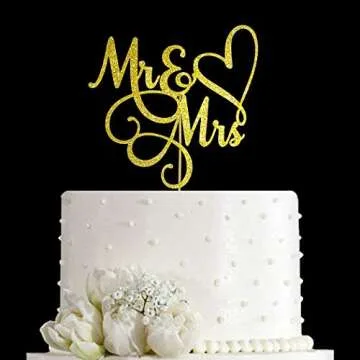 JIEEIN Mr and Mrs Cake Topper, Bride and Groom Sign Wedding, Engagement Cake Toppers Decorations, Double-faced Gold Glitter