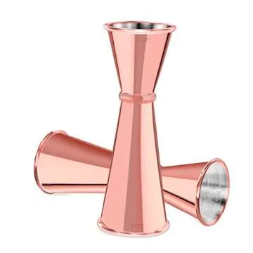 Show more Elevate your bartending skills with the Briout Double Cocktail Jigger, a premium 304 food-grade stainless steel jigger designed for cocktail enthusiasts and professional bartenders alike. Crafted from high-grade 18/8 stainless steel, this jigger is not only stunning with its elegant rose gold finish but is also built to last. Its thickening design enhances durability while providing exceptional shock resistance, ensuring you can mix, measure, and serve drinks with confidence. The rolled lip and professionally welded structure enhance its beauty, making it a perfect addition to any barware collection.