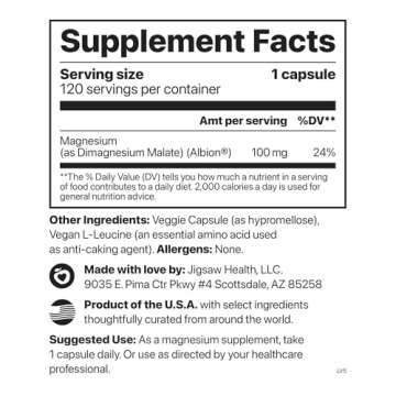 Jigsaw Health MagPure Malate | Premium Magnesium Malate Capsules | 120 Capsules