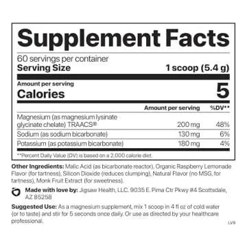 Show more Introducing Jigsaw MagSoothe, the ultimate premium calming magnesium supplement designed to bring serenity to your life! This fast-acting Magnesium Glycinate powder is the perfect solution for those looking to relax their legs, muscles, and mind. Engineered by Jigsaw Health, a trusted brand since 2005, this supplement enhances your ability to drift into a peaceful sleep, setting the stage for rejuvenation. Whether it's after a long day of outdoor activities or a mentally taxing workday, this product is here to support you.