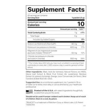 With a remarkable 800mg of potassium, along with 50mg of Magnesium Lysinate Glycinate Chelate and 90mg of Sodium from Redmond’s Real Salt, this drink is proven to replenish essential electrolytes lost through sweat. It helps maintain a proper fluid balance in your cells, promotes healthy energy levels, and supports healthy, relaxed muscle tone. What more could you ask for?