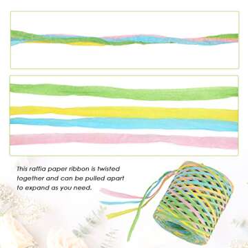 As part of its dynamic design, this raffia ribbon consists of four strands of colored paper twine, ensuring that your gift-wrapping and craft projects can achieve a delightful pop of color. It’s perfect for everything from wrapping gifts to adding unique touches to home decor or crafting delightful arrangements for parties. The neat roll design makes it incredibly easy to cut and adjust to your desired length, whether you're filling gift boxes or decorating wine bottles for an elegant touch at any event.