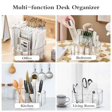 JIKIOU Acrylic Pen Holder, 360-Degree Rotating Pen Holder for Desk, Clear Desk Organizers and Accessories with 5 Compartments Pencil Organizer, Art Supply Storage Box Caddy for Office, Home