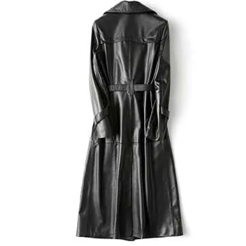 JILDISH Women's Fine Grain Leather Trench Coat - Ladies Black Lambskin Long Leather Over Coat with Belt (as1, alpha, s, regular, regular, Black Leather)