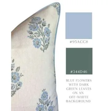 Jillien Harbor Floral Pillow Cover Camille Blockprint Throw Pillow for Home Grandmillennial 20"x20" 50 cm x 50 cm Pillow Cover Floral Pillow Cover Grandmillennial Home Decor