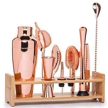 Jillmo Pro Martini Bartender Kit Copper Coated Rose Gold Stainless Steel Bar Set with Bamboo Stand - 19 oz Parisian Gold Cocktail Shaker with Bar Accessories …