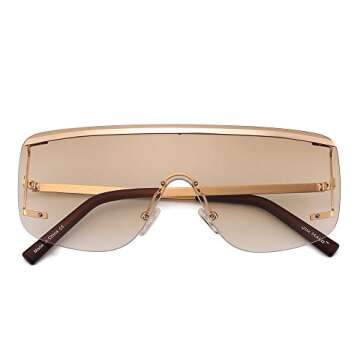 Trendy Flat Top Rimless Oversized Shield Sunglasses by JIM HALO (Light Gold/Gradient Brown)
