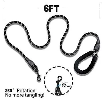 JIMEJV 6 FT Reflective Dog Leash with Poop Bags Comfortable Padded Handle Rope Leash for Puppy Small Medium and Large Dogs Outdoor Walking Playing Exploring