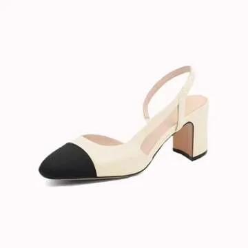 Jimishow Slingback Heels for Women Beige Two Tone Pumps Chunky Heel Closed Toe D’Orsay Sandals Cap Toe Quarter Strap 2 inches Block Heel Sexy Dress Pump Shoes Size 5-13 US