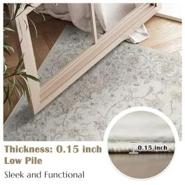 jinchan 6x9 Area Rugs Machine Washable Rug for Living Room - Stain Resistant Vintage Floral Medallion Ultra-Thin Low Pile Non-Slip Indoor Carpet for Bedroom Dining Room Kitchen (6x9ft,Grey)