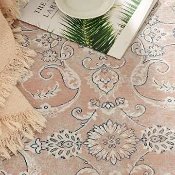 jinchan 5x7 Washable Pink Vintage Rug - Stylish Thin Non-Slip Design for Every Room