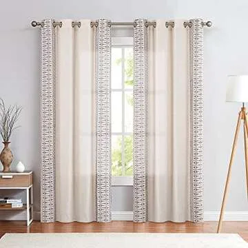 Show moreIntroducing the Jinchan Boho Curtains, where elegance meets functionality! With a beautiful beige linen blend as their foundation, these curtains feature stunning gray embroidery that adds a chic bohemian touch to any space. Each set includes two panels, measuring 50 inches wide and 90 inches long each, making them ideal for most standard windows. The captivating geometric pattern enhances your interior decor while infusing your home with warmth and character.
