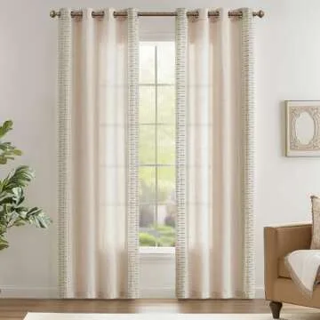 Show moreTransform your space into a serene oasis with the JINCHAN Boho Curtains designed for a stylish touch to your home decor. Crafted from a premium linen blend, these window curtains stand out not only for their exquisite embroidery but also for their practicality. Measuring 50 inches wide by 84 inches long each, this set of two panels ensures a total width of 100 inches perfect for standard-sized windows. The elegant sage green against a beige backdrop adds a calming vibe to any room, be it your bedroom, living room, or cozy home office. The grommet top design allows for effortless installation, supporting a curtain rod with an inner diameter of 1.6 inches for easy sliding and styling.