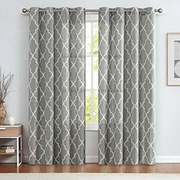 jinchan Curtains Grey Linen Living Room Drapes Light Filtering Moroccan Tile Print Window Treatment for Bedroom Curtain Flax Textured Geometry Lattice Grommet Dining Room 84 Inch Length 2 Panels