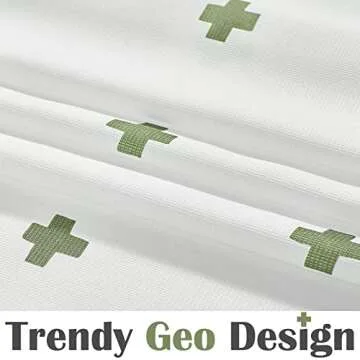 jinchan Green and White Shower Curtain Cross Pattern Geometric Cute Positive Inspirational Modern Fabric Shower Curtains for Bathroom Waterproof with 12 Hooks 70x72 Inches