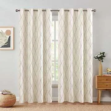 Transform your living space with the exquisite JINCHAN Linen Curtains, designed to elevate your home décor with a perfect blend of contemporary and classic aesthetics. Crafted with meticulous attention to detail, these curtains showcase a stunning grey diamond embroidered geometric pattern that adds a designer touch to any room. Each package includes two generously sized panels measuring 50 inches wide by 84 inches long, creating a majestic 100 inches width when combined....
