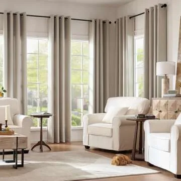 JINCHAN Linen Textured Curtains for Living Room Darkening Bedroom Curtains Thermal Curtains Linen Look Thermal Insulated Curtains Grommet Top Window Drape, W52 x L96, Greyish Beige Curtain 1 Panel