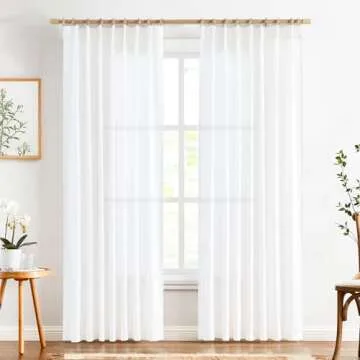 jinchan Pinch Pleated Linen Blend Curtains for Living Room, 84 Inches Long White Curtains, Linen Farmhouse Curtains Country Rustic Pinch Pleated Curtains with Hooks Window Curtain, 2 Panels Off White