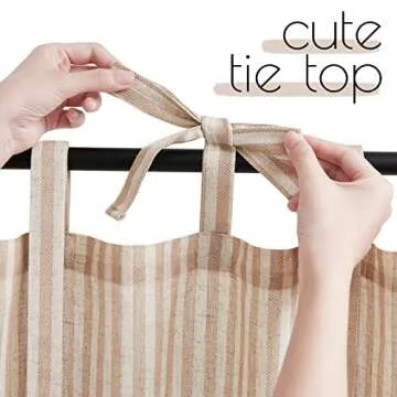 jinchan Tie Top Linen Kitchen Curtains 24 Inch Length Striped Tier Curtains Ticking Stripe Small Drapes for Living Room Bathroom Cafe Small Window Farmhouse Rustic Pinstripe Rod Pocket 2 Panels Tan